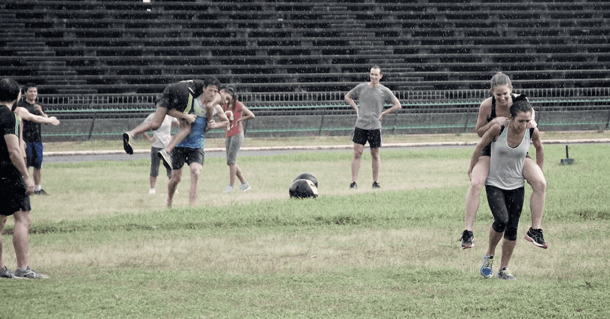 We also do a track workout every few months which has a bit of a CrossFit meets field day feel. A lot of our members came from the running community and last December we organized about 25 members to do the Angkor Wat half marathon (or 10K) up in Siem Reap (two of them did it in clown wigs go give you an idea of our membership).