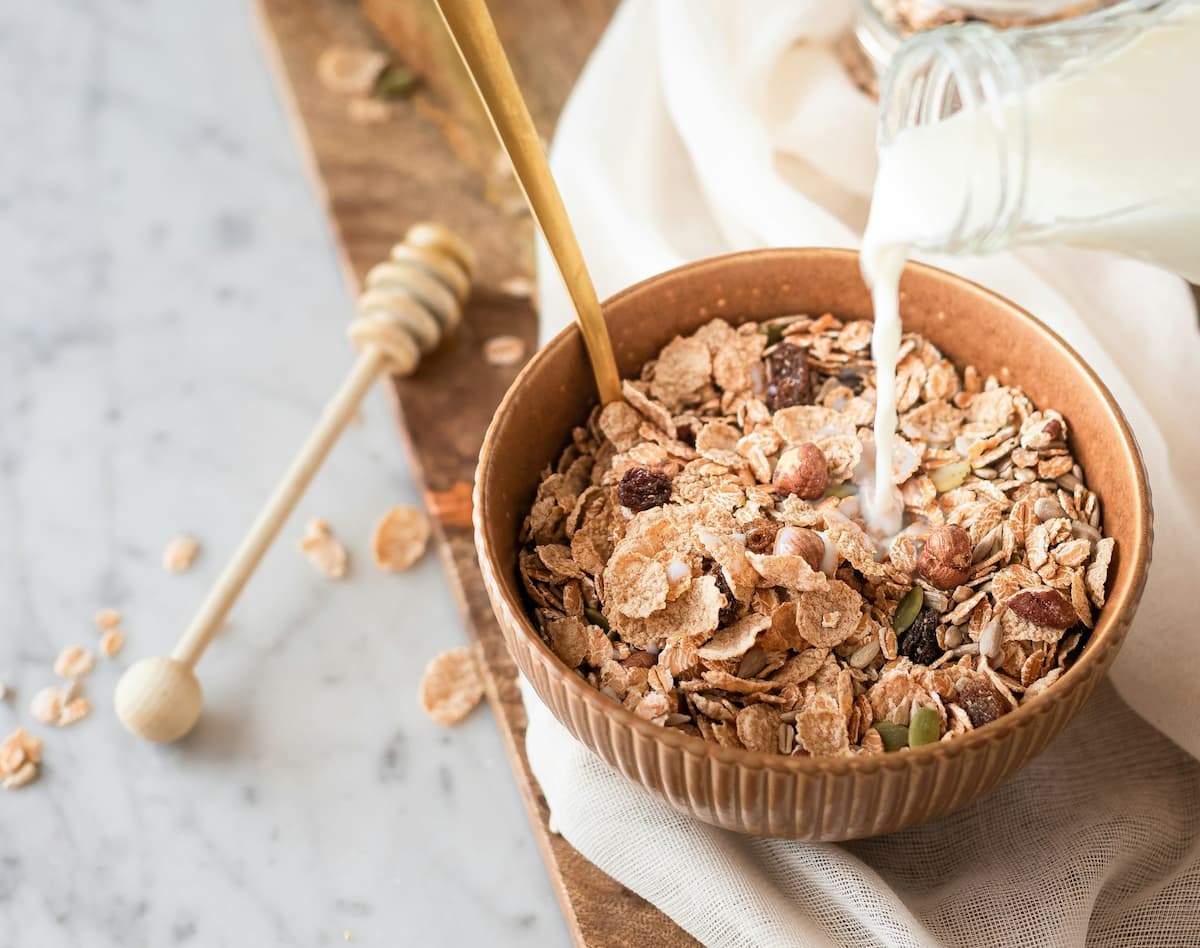 Pair your cereal with protein and healthy fats to keep you full longer and stabilize blood sugar levels. Examples include adding nuts, seeds, or a dollop of nut butter to your bowl.