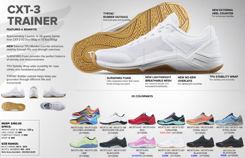 When creating the latest instalment in the CXT lineage, TYR worked with their roster of elite functional fitness athletes such as Jayson Hopper, Emma Lawson and Pat Vellner to collect input and test the shoes in the most demanding conditions.