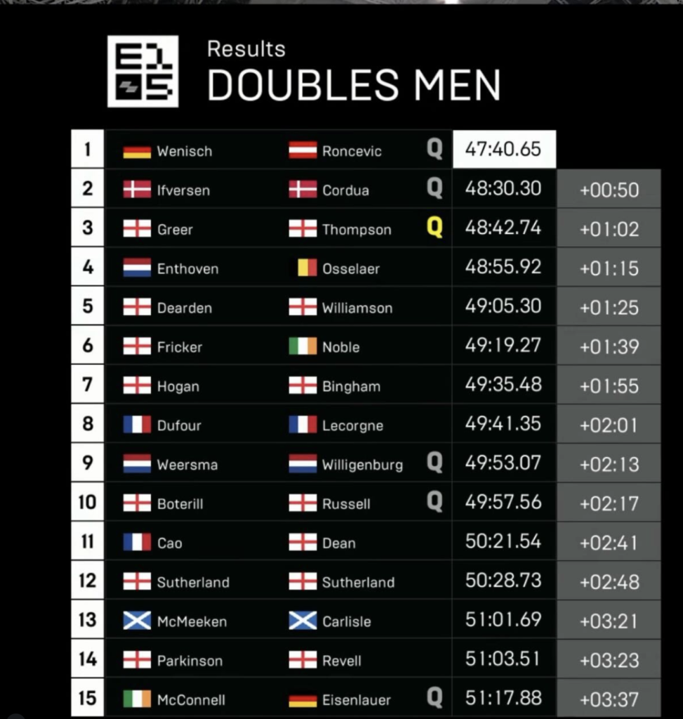 Wenisch and Rončević were fast from the start and stayed consistent throughout. They moved efficiently through the stations and kept their pace all the way to the finish without any major drop off.